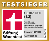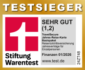Mit dem Tarif "TravelSecure-Topschutz" der Würzburger Versicherungs-AG habe ich ein Produkt für Sie im Angebot, welches bei der Zeitschrift Stiftung Warentest-Finanztest (Ausgabe Januar 2026) mit dem Testergebnis "sehr gut" bewertet wurde.